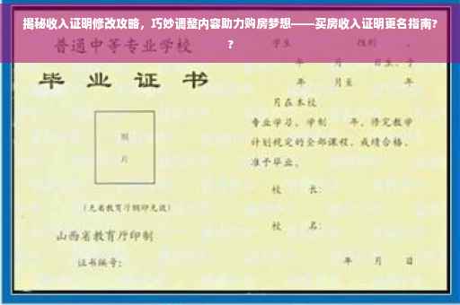 摘要:本文将为你揭秘买房收入证明修改攻略,教你如何巧妙调整内容以提高购房成功率。文章将介绍如何修改收入证明中的名字等重要信息,助你轻松应对购房过程中的各种挑战。不论你是首次购房还是改善住房,本文都能为你提供实用的建议和技巧。