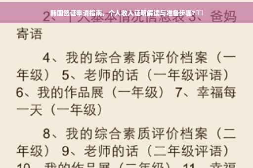 随着中韩两国交流日益频繁,越来越多的中国公民选择前往韩国旅游、学习或商务活动,在申请韩国签证时,个人收入证明是重要材料之一,本文将详细介绍韩国签证申请中个人收入证明的相关内容,帮助申请人顺利准备材料,提高签证申请成功率。