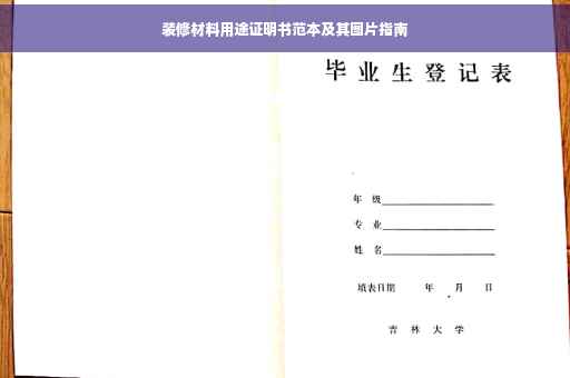 摘要:本证明书旨在明确装修材料的用途及规格。内容包括材料名称、使用地点、具体用途、数量及规格等详细信息。证明书的范本提供了标准化的格式,方便装修业主和施工单位进行填写,以确保材料使用的合法性和规范性。附带的图片可作为参考,方便用户了解填写范例和格式要求。该证明书对于保障装修质量和安全至关重要。