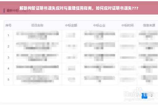 摘要:面对解除拘留证明书遗失的情况,应首先保持冷静,及时前往原颁发机关进行挂失和补办。积极采取措施重建信用,如提供证明文件证明身份,主动沟通消除误会,以及加强未来文件管理。通过正确的应对方式和积极行动,可以恢复信用并避免不必要的麻烦。