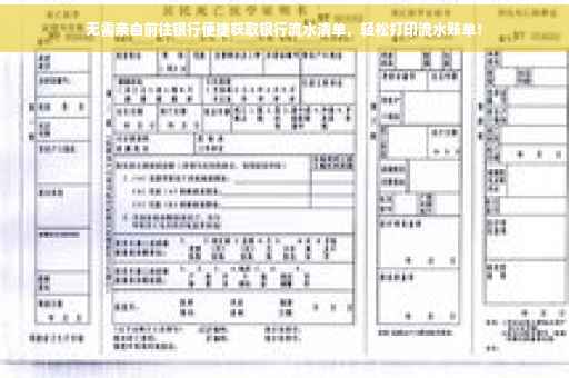 摘要:无需亲自前往银行,也能轻松获取银行流水清单。通过网上银行、手机银行等电子渠道,即可实现流水账单的便捷打印。操作简便,只需登录个人银行账户,进入相关页面,即可查询并打印流水账单。省时省力,轻松获取银行流水证明。