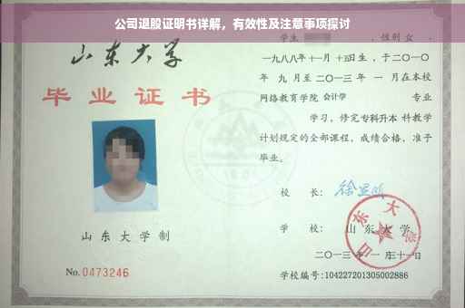 摘要:本文将详细介绍公司开具的退股证明书,包括其含义、作用以及有效性问题。退股证明书是股东退出公司时的重要证明文件,能够证明股东的退股时间和退股股份数量。本文还将探讨退股证明书的法律效力,帮助读者了解其在法律框架下的作用。通过本文,读者可以更好地了解退股证明书的细节和重要性。