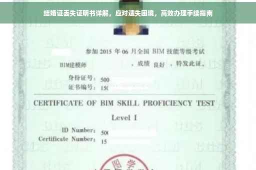 在我们的日常生活中,证件的保管至关重要,有时,由于疏忽或意外,我们可能会遗失一些重要的证件,如结婚证,结婚证是夫妻关系的法律凭证,一旦丢失,可能会对日常生活造成诸多不便,当面临结婚证丢失的情况时,该如何应对呢?本文将为您详细解析结婚证丢失证明书的办理流程及相关知识,助您顺利度过这一困境。