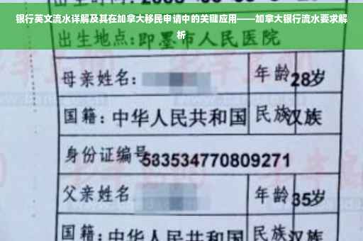 摘要:本文将详细解析银行英文流水,介绍其在加拿大移民申请中的重要性和应用。加拿大移民局对银行流水有一定要求,申请人需要提供清晰、规范的银行流水记录以证明其资金状况和来源。本文将指导读者如何准备符合要求的银行流水,并强调流水记录的真实性和准确性对移民申请成功的重要性。