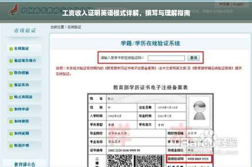 英文对照: Income Verification Letter This is to verify that XXX (ID Card Number: XXXXXXXXXXXXXXXXXX), an employee in the XX Department, holds the position of XX in our company, with a basic monthly salary of XXX yuan, and enjoys other benefits such as bonuses and allowances. Our company has paid social security and housing fund for him/her. 特此证明 Company stamp: ____________________ Date: _______ (Year) _______ (Month) _______ (Day) 在实例中,我们可以看到工资收入证明的英文表达遵循了上述介绍的格式和要点,使用了专业术语,确保了信息的准确性。 五、 了解工资收入证明的英语表达模式,对于在国际交流中求职、贷款、签证等场合至关重要,本文详细介绍了工资收入证明的主要内容及英语表达方式,帮助读者正确撰写和理解工资收入证明,在实际应用中,我们应遵循格式规范,确保信息的准确性,使用专业术语,并保持简洁明了的表达方式。