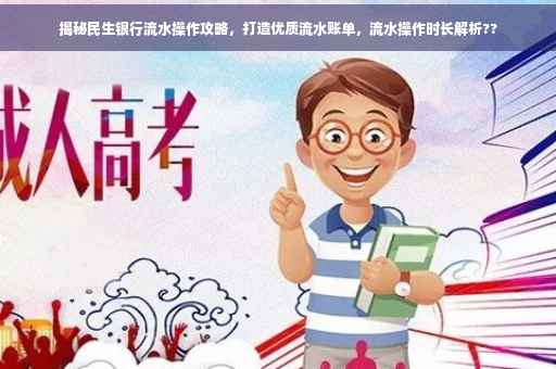 摘要:本文将为你揭秘民生银行流水操作的完整攻略,教你如何轻松打造优质流水账单。文章将简要介绍做民生银行流水所需的时间,并提供操作指南,帮助你了解如何有效管理和规划个人银行账户,提升流水账单的质量。跟随本文,让你轻松掌握民生银行流水操作技巧。