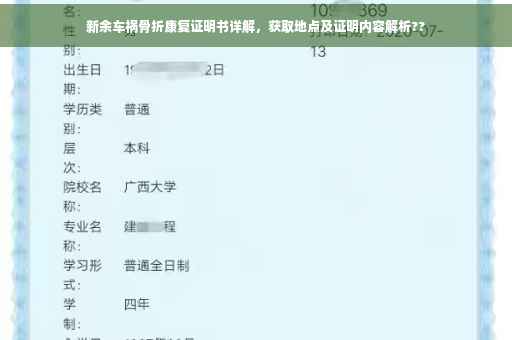 摘要:本文将详细介绍新余车祸骨折康复证明书的内容及其重要性。该证明书是新余地区车祸骨折患者康复过程的必要文件,详细记录了患者的康复情况。本文还将介绍如何获取该证明书,包括开具证明书的机构及流程等。全文旨在帮助读者了解新余车祸骨折康复证明书的开具过程及其重要性。