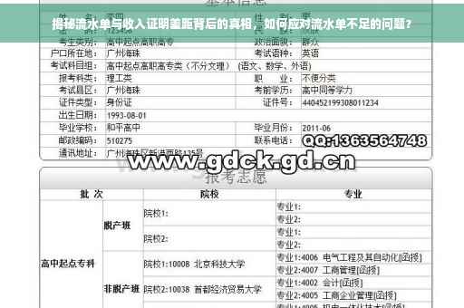 在当今社会,随着经济的发展和人们收入水平的提高,越来越多的人开始关注自己的财务状况,在这个过程中,流水单和收入证明成为了重要的财务凭证,很多人会发现自己的流水单和收入证明之间存在较大的差距,这究竟是怎么回事呢?本文将就此问题展开讨论,探究流水单与收入证明之间的差距及其背后的原因。