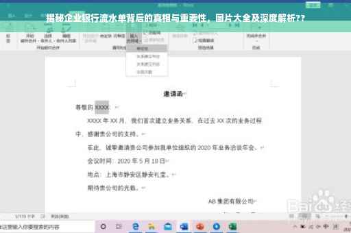 在当今数字化时代,随着电子商务和金融科技的飞速发展,企业银行流水单成为了企业经营活动中不可或缺的一部分,作为企业资金往来的重要记录,银行流水单不仅关乎企业的财务管理,更在某种程度上体现了企业的运营状况和经济效益,本文将围绕企业银行流水单图片这一主题展开,带您深入了解其背后的真相与重要性。