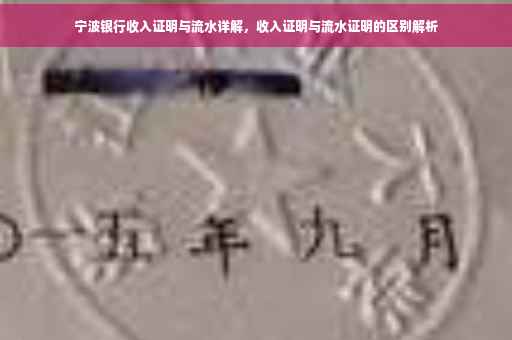 摘要:本文将详细介绍宁波银行的收入证明与流水证明,包括其区别和获取方式。收入证明主要证明个人的收入状况,而流水证明则详细展示了一段时间内的资金流动情况。两者在证明个人经济状况时各有侧重,了解清楚其差异有助于更好地使用这些证明。