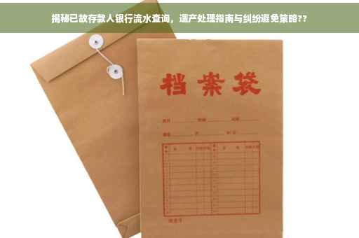 随着社会的进步和经济的发展,越来越多的人开始关注个人财产问题,其中遗产处理成为了一个不可忽视的问题,尤其是在处理已故存款人的银行流水时,很多人由于缺乏相关知识和经验,往往感到困惑和无助,本文将围绕这一主题展开,帮助大家了解如何正确处理已故存款人的银行流水,避免纠纷的发生。