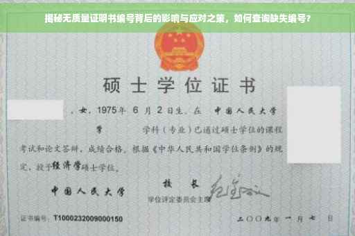 摘要:本文探讨了没有质量证明书背后可能存在的问题以及编号缺失所带来的影响。针对这种情况,介绍了应对之策,包括如何查找缺失的编号。建议消费者在购买产品时务必关注质量证明书的完整性,以确保产品质量。对于编号缺失的质量证明书,可通过联系生产厂家、查询相关平台或咨询专业人士等途径进行核实和查找。