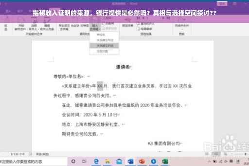 揭秘收入证明是否需要银行提供的真相与选择空间。收入证明并非必须通过银行出具,还可以由雇主或其他相关机构提供。撰写收入证明时,应明确内容真实、格式规范。可选择简洁明了的语言,清晰表述个人收入情况。了解不同场合下的证明要求,灵活选择提供方式,确保满足实际需求。
