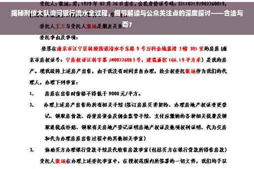 随着金融科技的飞速发展,银行流水在刑事侦查工作中愈发显得重要,本文将详细介绍刑侦大队在询问银行流水过程中的各个环节,帮助公众更好地了解这一法律流程,并加深对金融和法律知识的认识。