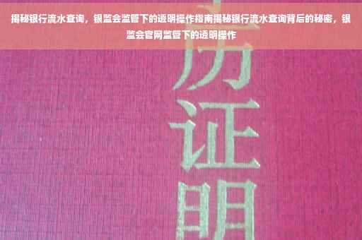 随着金融行业的迅速发展,银行流水查询已成为公众关注的焦点,作为个人或企业资金往来的重要记录,银行流水在贷款申请、信用卡办理和投资理财等方面发挥着举足轻重的作用,为确保查询过程的透明性和公正性,同时保障个人隐私和企业信息安全,银监会制定了一系列监管政策。