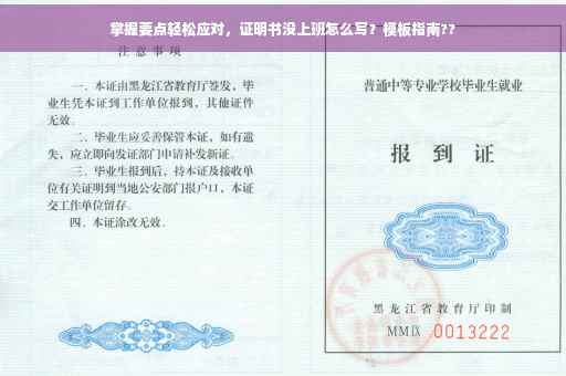 摘要:对于未上班的证明书撰写,需明确掌握一些要点。开头明确说明未能上班的原因,接着详细描述具体情况,包括起始时间和具体原因。随后,表达对此情况的遗憾和承诺,表示愿意尽快解决问题并恢复工作。结束语表达对此事的认真对待和重视。掌握这些要点,轻松应对未上班的证明书撰写,并可参考相关模板进行撰写。