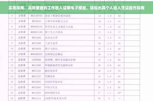 随着互联网技术的发展和数字化时代的来临,越来越多的企业和机构开始采用电子化的方式来处理日常事务,工作收入证明作为个人收入凭证的重要文件,也逐渐实现了电子化操作,本文将为大家介绍工作收入证明电子模板的相关知识,帮助大家高效便捷地出具个人收入凭证。