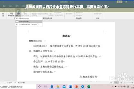 摘要:券商要求银行流水盖章的做法引起了广泛关注。背后的真相究竟是什么呢?本文揭示了券商之所以要求银行流水盖章的原因,包括验证客户资产状况、防范风险等方面。探讨了这种做法的合理性和可能存在的问题,为读者提供了全面的视角。