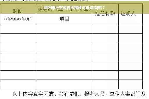 摘要:本文将揭示赣州银行的定薪流水细节,包括其查询方法和流程。通过深入了解定薪流水的操作,帮助读者更好地掌握个人薪资状况及银行流水信息。本文还将提供相关的注意事项和建议,以确保查询过程的安全和准确性。