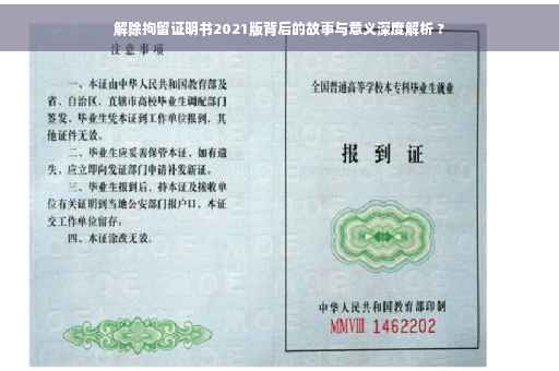 摘要:解除拘留证明书2021版是一份重要的法律文件,其背后隐藏着许多故事和意义。这份证明书代表着被拘留者经过一系列法律程序后获得释放的凭证。本文将探究解除拘留证明书的重要性及其背后的故事,包括其背后的法律程序和人权保障等方面。