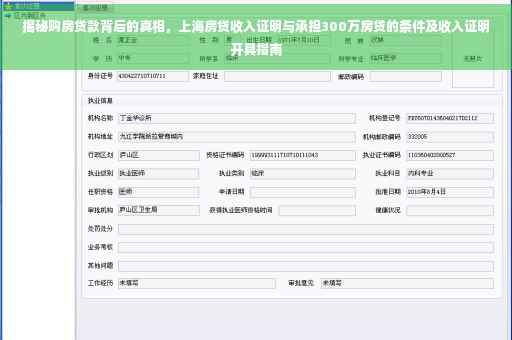 在繁华的上海,购房一直是人们关注的焦点话题,面对高昂的房价,许多家庭选择通过贷款来实现自己的购房梦想,本文将深入探讨在上海购买房贷时收入证明的重要性,并为你揭示承担300万房贷所需的收入状况。