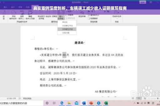 摘要:本文将介绍一个真实案例,深度剖析车祸误工减少收入证明的写作要点。通过该案例,将详细说明因车祸导致的误工如何影响个人收入,并如何准备一份有效的收入证明。文章将涵盖证明中必须包含的关键信息,如误工时间、收入减少情况、相关证明文件等。阅读本文,将帮助您了解如何撰写一份规范、准确的收入证明,以便在处理车祸相关事务时提供有力证据。