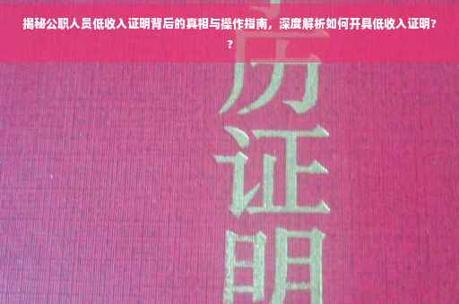 摘要:本文将揭示公职人员低收入证明背后的真相与故事。探讨公职人员的收入状况及其背后的原因,深入分析低收入证明开具的过程和可能存在的困难。本文将提供一些建议和解决方案,帮助公职人员更好地理解和处理低收入证明的问题。??