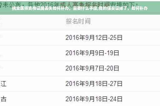 只需要向当地的卫生组织提交以下材料就可以补办了:申请补发《医师资格证书》须提交的材料1、《医师资格证书补发申请表》一式两份2、在省辖市级以上公开发行的报刊上刊登的作废声明原件及复印件;3、《医师资格认定申请表审核表》(经认定取得资格)或《授予医师资格审核表》(经考试取得的资格)原件及复印件;4、身份证原件及复印件;5、近期免冠正面二寸彩色照片3张,《医师资格证书》补发申请表。