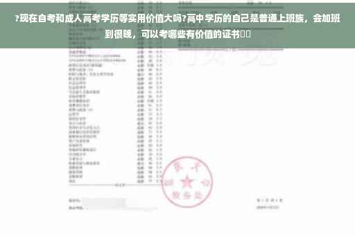3.总之。自学考试和成人高考的学历含金量是不如全日制的,实用价值也小,但对于某部分人来说,它也是一定要有的,并不是可有可无,我们不能拿着高中中专的文凭去跟别人竞争,它仍然具有十分重要的意义。