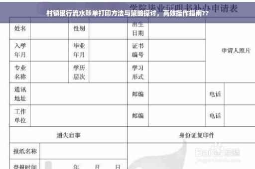 随着金融行业的快速发展,村镇银行在农村地区扮演着越来越重要的角色,为了更好地服务农村客户,提高业务效率,掌握如何打印银行流水成为了关键技能,本文将详细介绍村镇银行打印流水的方法与策略,帮助读者更好地了解和使用这一服务。