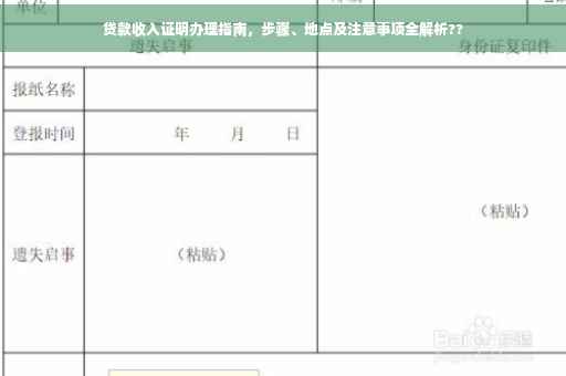 贷款收入证明办理全解析,为您详细解析办理步骤和注意事项。想要办理收入证明,您需要前往贷款银行或相关金融机构,携带个人身份证明、工作证明及贷款合同等相关材料。在办理过程中,务必注意填写准确无误的信息,确保证明的真实性和有效性。本文旨在帮助您顺利获取贷款收入证明,顺利办理贷款手续。
