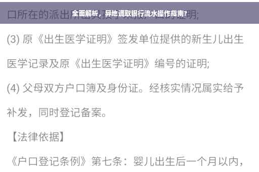 2、异地调取:指在非开户所在地查询或获取银行流水记录的过程。