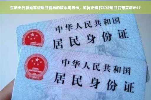 摘要:本文主要探讨了东航无外籍乘客证明书背后的故事及其启示。文章介绍了证明书的背景和内容,阐述了如何撰写东航无外籍乘客证明书,并强调了其在实际应用中的重要性。通过这个故事,我们可以得到关于企业管理和服务质量的启示,提醒企业在服务过程中要注重细节,提高服务质量,以满足客户需求。