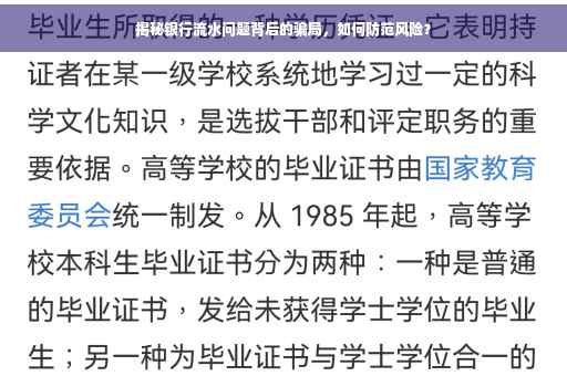 近年来,随着互联网的普及和金融科技的发展,越来越多的人开始关注个人财务管理和理财投资,在这个过程中,银行流水作为重要的财务凭证之一,往往受到广泛关注,一些不法分子利用人们对银行流水的不了解,通过虚假银行流水等手段进行诈骗活动,本文将揭示银行流水问题的骗局,帮助广大读者提高警惕,防范风险。