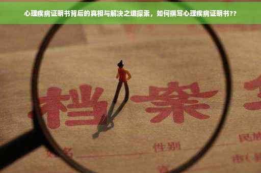 在当今社会,心理疾病越来越受到人们的关注,越来越多的人因为心理压力、情绪波动等问题寻求帮助,心理疾病的证明书作为专业评估的重要工具,对于患者和医生来说都具有重要意义,本文将探讨心理疾病证明书的背后真相,以及如何正确看待和使用这一证明,为患者寻求解决之道。