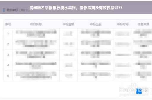 在当今社会,随着金融行业的快速发展,银行流水作为个人和企业经济活动的见证,有时却成为了一些人想要隐瞒的“秘密”,匿名举报银行流水成为了公众关注的焦点话题,本文将深入探讨匿名举报银行流水的背后真相,同时为广大读者提供一份详尽的操作指南,让我们一同揭开这一话题的神秘面纱,了解如何正确、合法地处理银行流水问题。