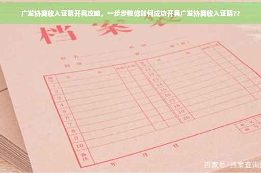 本文旨在为广发银行的客户提供关于协商收入证明开具的详细指南,助您顺利获取收入证明,解决疑惑,在实际操作过程中,建议您提前了解相关政策和流程,准备好相关材料,确保申请顺利,希望本文能为您带来帮助。