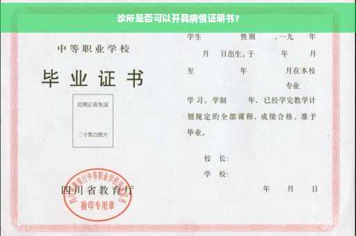 诊所可以开病情证明书。,,对于患者的健康状况和疾病情况,诊所医生可以根据实际情况出具病情证明书,证明患者在一定时间内的健康状况和需要进行的医疗措施。病情证明书是医疗证明文件之一,具有法律效力,可以为患者提供必要的证明,帮助患者解决一些实际问题。但需要注意,病情证明书的开具必须真实、准确、规范,确保信息的可靠性和可信度。