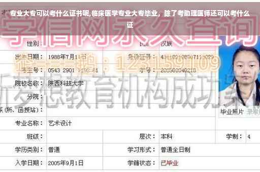 临床医学专业大专毕业,一般都是考助理医师证,然后做相关的工作后在考医师资格证; 据《中华人民共和国执业医师法》及有关规定具有下列条件之一的,可以参加医师资格考试: (一)具有高等学校医学专业本科以上学历,在执业医师指导下,在医疗、预防、保健机构中试用期满一年的; (二)取得执业助理医师执业证书后,具有高等学校医学专科学历,在医疗、预防、保健机构中工作满二年;具有中等专业学校医学专业学历,在医疗、预防、保健机构中工作满五年的。 (三)具有高等学校医学专科学历或者中等专业学校医学专业学历,在执业医师指导下,在医疗、预防、保健机构中试用期满一年的,可以参加执业助理医师资格考试。 以师承方式学习传统医学满三年或者经多年实践医术确有专长的,经县级以上人民政府卫生行政部门确定的传统医学专业组织或者医疗、预防、保健机构考核合格并推荐,可以参加执业医师资格或者执业助理医师资格考试。考试的内容和办法由国务院卫生行政部门另行制定。