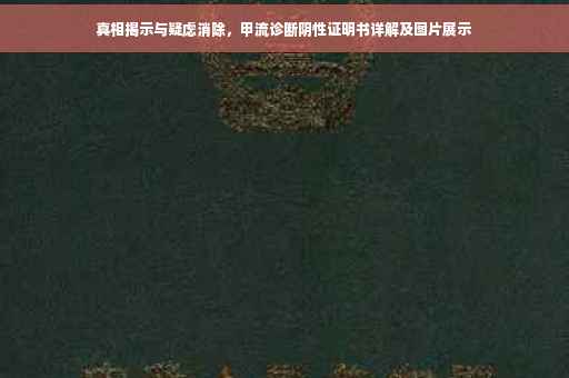 随着甲型流感(简称甲流)的广泛传播,越来越多的人开始关注自己的健康状况,甲流诊断阴性证明书作为一种重要的医学证明文件,对于确诊患者康复、消除疑虑以及保障公众健康具有重要意义,本文将详细介绍甲流诊断阴性证明书的相关知识,帮助大家更好地了解其作用和重要性。