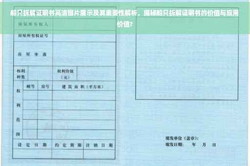随着全球航运业的快速发展,船只拆解已成为一个不可忽视的环节,在这个过程中,船只拆解证明书的重要性逐渐凸显出来,本文将详细介绍船只拆解证明书的作用、种类及其重要性,同时为大家呈现高清大图的船只拆解证明书图片,帮助大家更直观地了解相关内容。