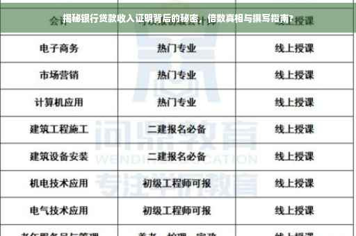 在当今社会,随着金融市场的日益繁荣,越来越多的人选择通过银行贷款来实现自己的各种需求,而在申请贷款的过程中,收入证明成为了评估个人信用和还款能力的重要依据,在银行贷款收入证明中,倍数究竟扮演着怎样的角色呢?本文将为您揭开这一秘密,带您了解背后的真相。