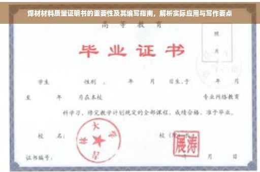 随着工业领域的飞速发展,焊接技术已广泛应用于各行各业,作为焊接过程中不可或缺的一环,焊材的质量直接关系到焊接结构的安全与稳定性,焊材材料质量证明书的重要性日益凸显,本文将详细探讨焊材材料质量证明书的作用、内容及其在实际应用中的价值。