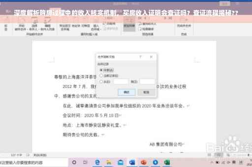 摘要:购房过程中的收入核实机制是重要的环节,买房收入证明会被查证。查证过程包括核实收入证明的真实性以及购房者的收入状况是否稳定等。具体查证方式可能因地区和政策而异,可能包括向雇主核实、查询银行流水等方式。购房者应提供真实有效的收入证明,以确保购房过程的顺利进行。