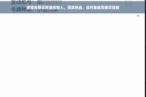 在当今社会,贫困问题依然严峻,许多家庭因各种原因陷入贫困的困境,尤其是最低收入家庭,他们往往无力应对突发事件,孩子们的教育和家庭成员的医疗保障等问题也亟待解决,本文旨在深入探讨家庭贫困证明最低收入的现实挑战及应对策略,以期引发社会关注,共同助力贫困家庭走出困境。