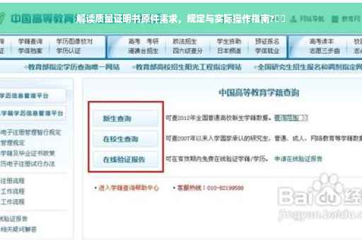摘要:关于质量证明书是否需要原件的问题,相关规定因具体情况而异。一般而言,重要或官方场合需要出示质量证明书的原件。本文解读了相关规定,并提供了实际操作指南,帮助读者了解在不同情况下应如何处理。在撰写关于“质量证明书要原件吗”的相关内容时,应明确说明需要原件的场合,以及非原件情况下的处理方法。