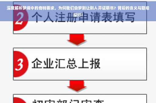 梦到让别人开证明书虽然是一种奇特的梦境,但背后却隐藏着深层的含义与隐喻,通过深度解析,我们可以发现这样的梦境可能反映了梦者在现实生活中所面临的矛盾、期望和压力,我们要关注自己的内心世界、寻找问题的根源并寻求解决之道,也要珍惜现实生活、努力过好每一天。