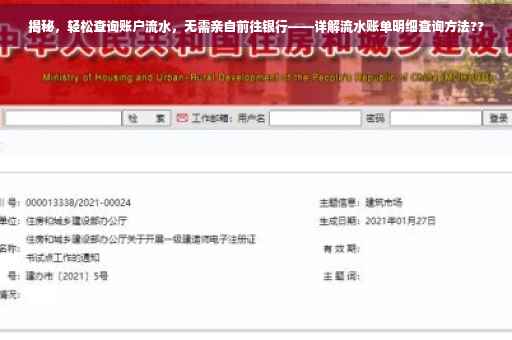 在现代社会,随着科技的飞速发展,我们的日常生活已经离不开银行,有时候我们需要查询账户流水,却又因为各种原因无法亲自前往银行,本文将为您详细介绍几种无需前往银行即可查询账户流水的方法,助您轻松掌握自己的财务情况。