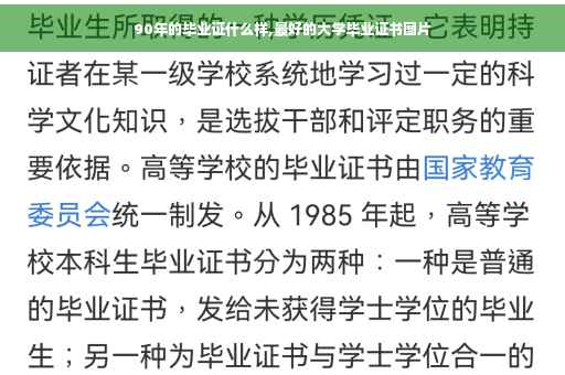 90年的毕业证是表面颜色是红色的,初中毕业证是塑料皮子,高中毕业证是段子面的皮子,长度大约是十公分,宽度大约为六公分,毕业证里面有毕业生的照片,上面会写明某某学生在某某学校完成了初中或者高级中学学业,成绩合格准予毕业字样,右下方会有学校的校长签字以及学校的工章,还有钢印。这就是90年代的毕业证。