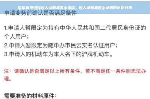 摘要:,,本文介绍了重庆低保收入证明与流水的全面解读,详细阐述了两者之间的区别。重庆低保收入证明是用于证明个人或家庭享受低保待遇的收入情况,而流水证明则是一种财务交易记录的证明。两者在证明目的、内容和使用场景上有所不同。通过本文,读者可以了解如何正确理解和使用这两种证明,以维护自身权益和保障社会福利待遇的公正分配。
